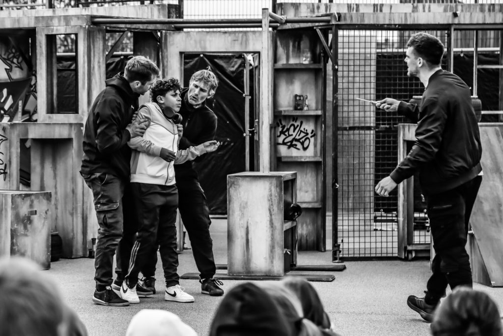 A big part of this year’s tour has been our Education Programme, which has seen us going into many different settings to provide presentations on county lines and knife crime, as well as workshops in rap, physical theatre, parkour and creative education.