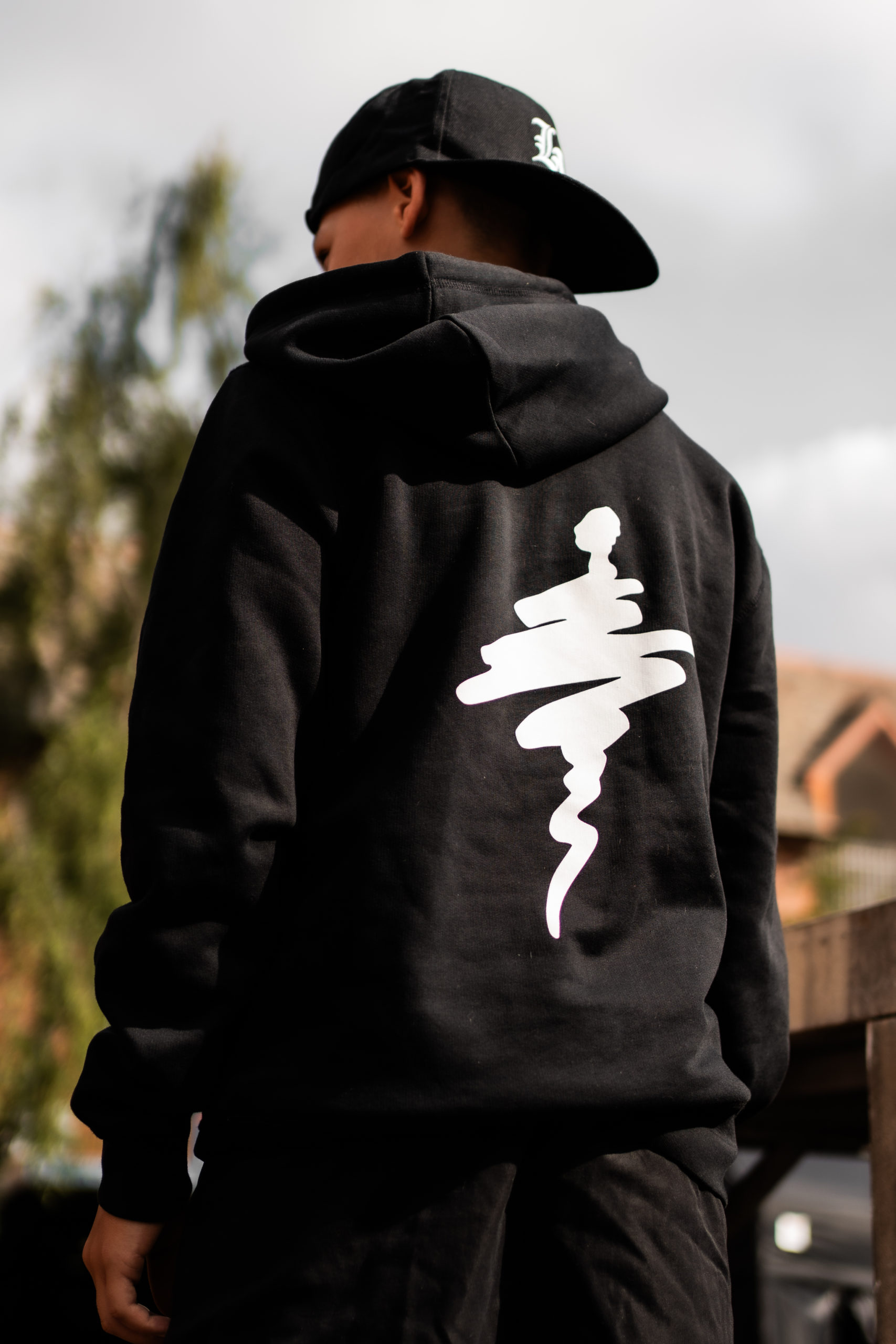 This garment is available in Black or White, with a small JiM logo on the front and a bold JiM figure on the back.