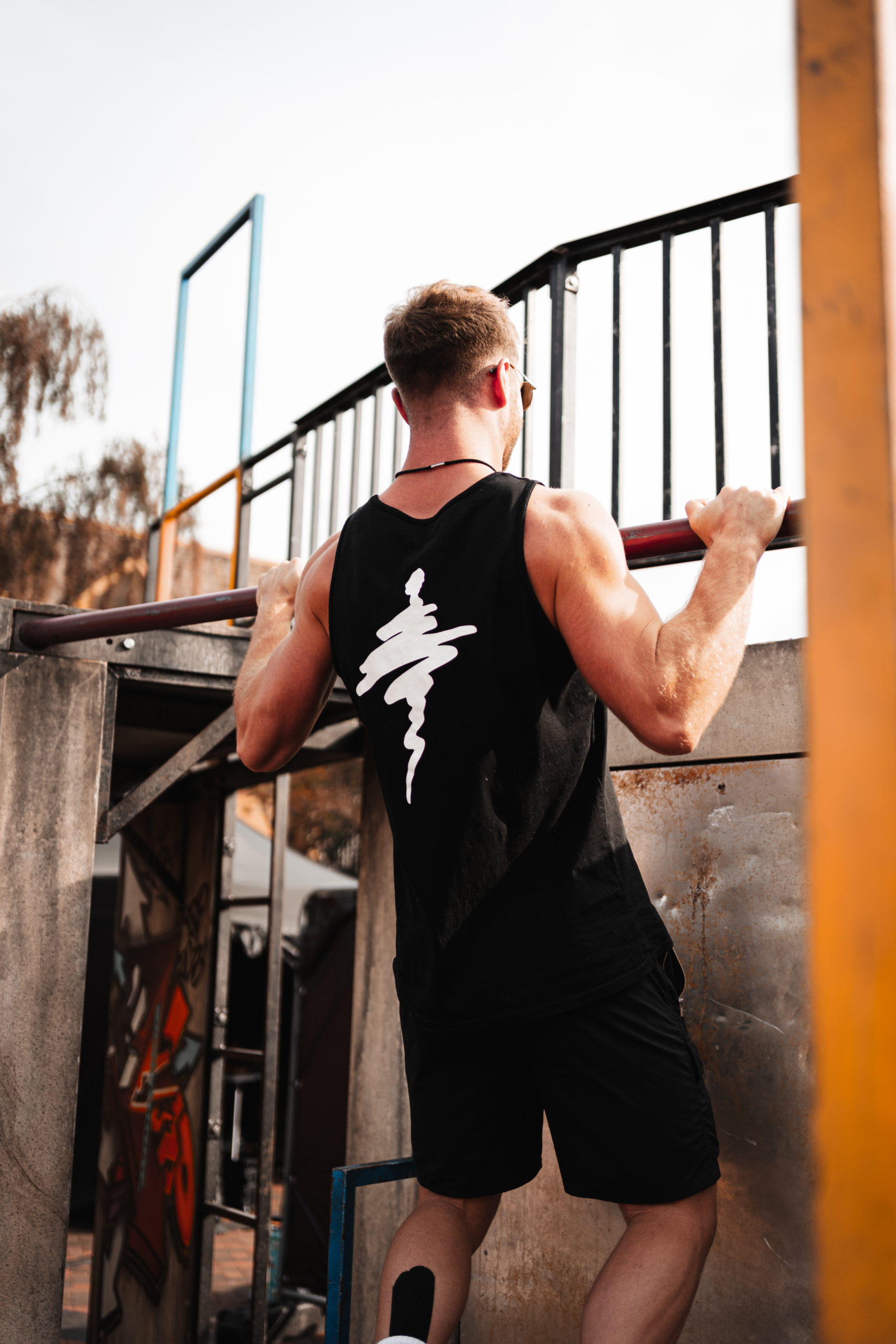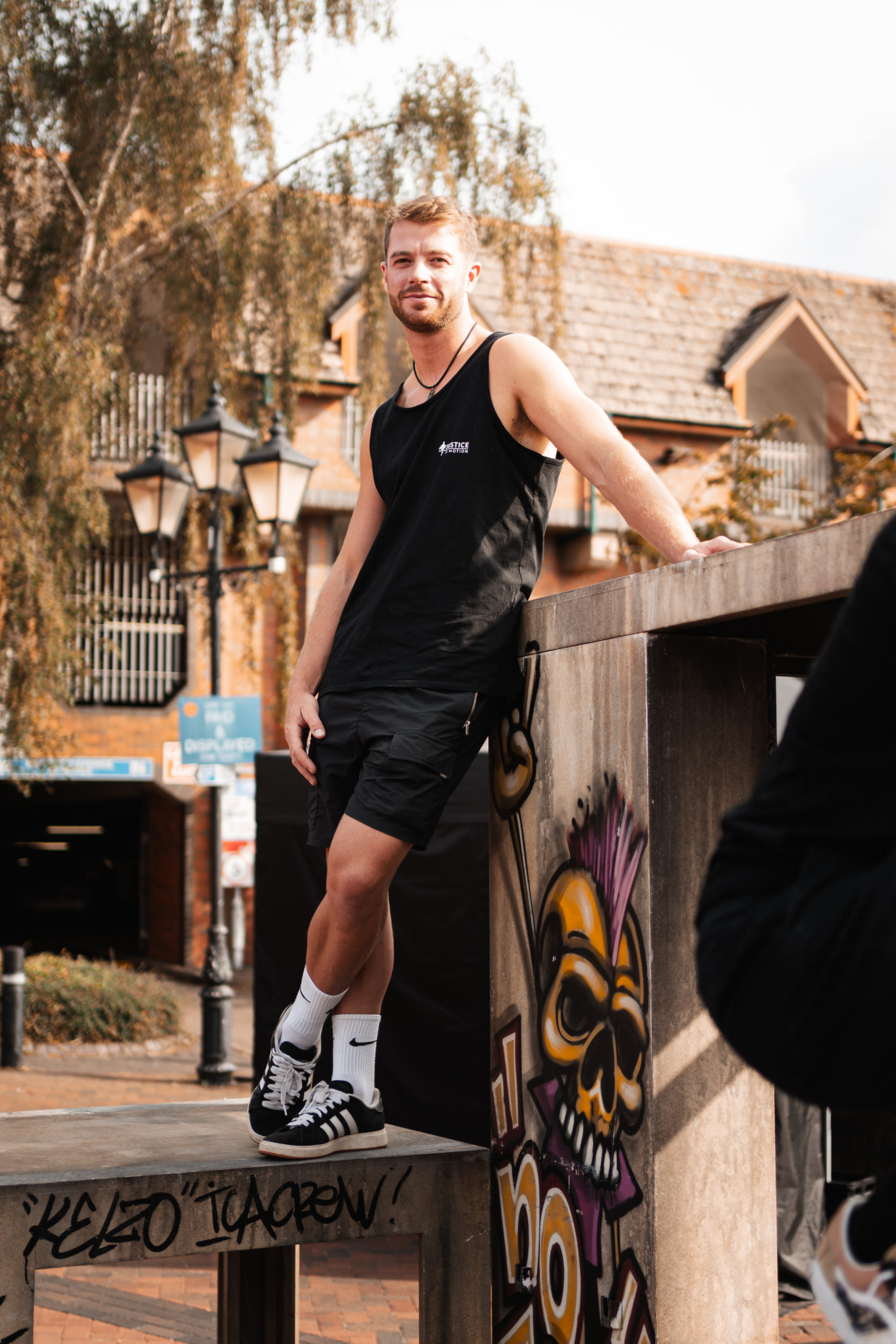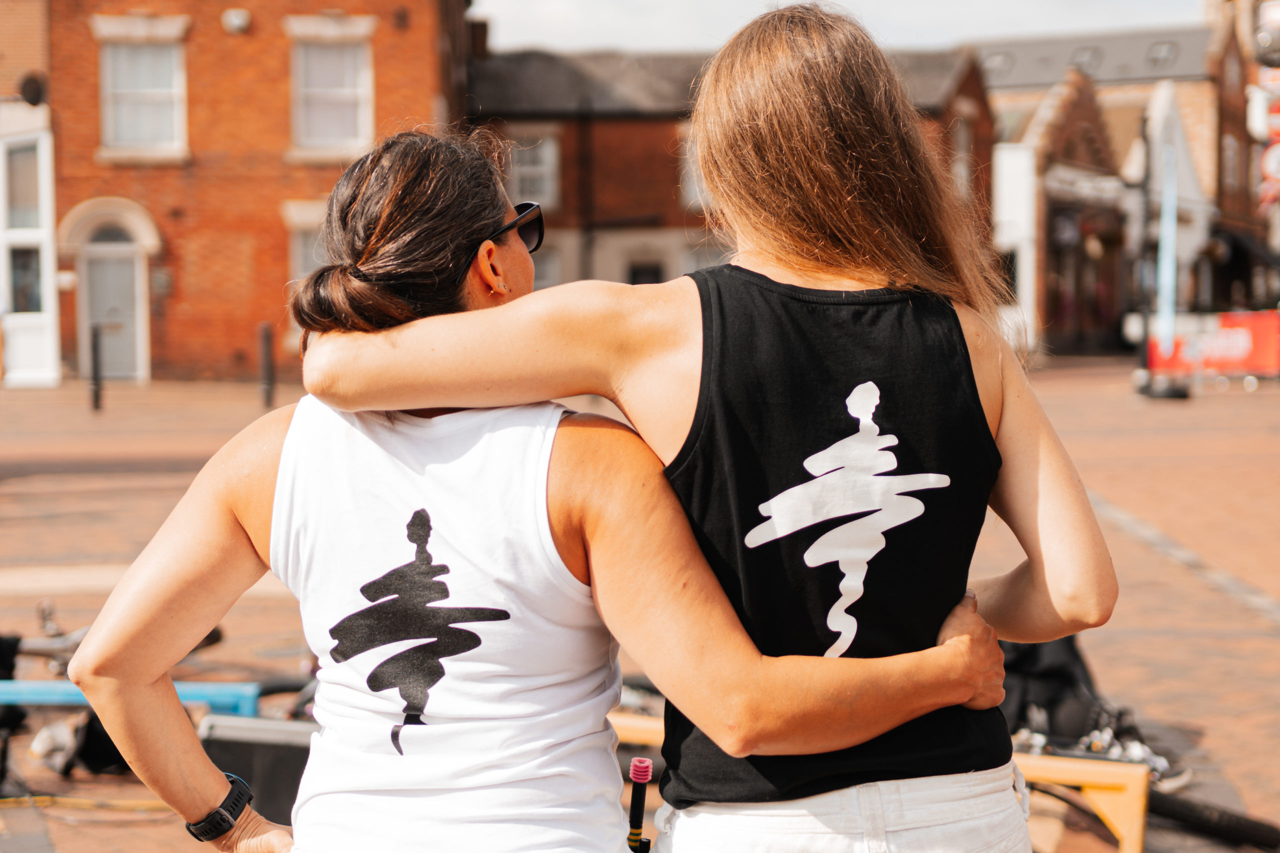 This tank is available in Black or White, with a small JiM logo on the front and a bold JiM figure on the back.